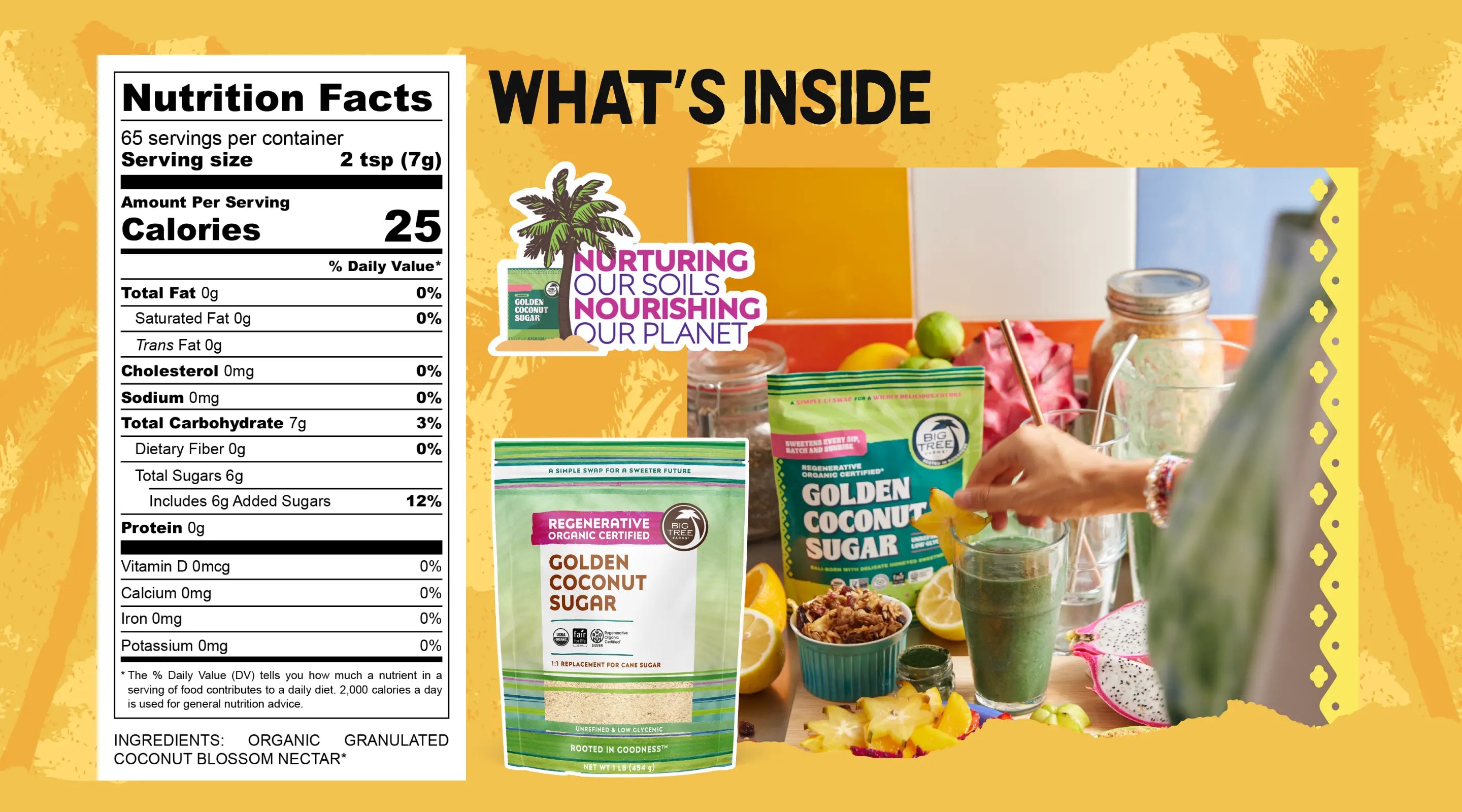 Enter Big Tree Farms Regenerative Organic Certified Golden Coconut Sugar - a natural sweetener that's been used for centuries in Indonesia for baking, saucing and drinking.Â